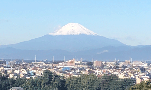 横浜薬科大学図書館棟から見る今日の富士山をご覧ください。