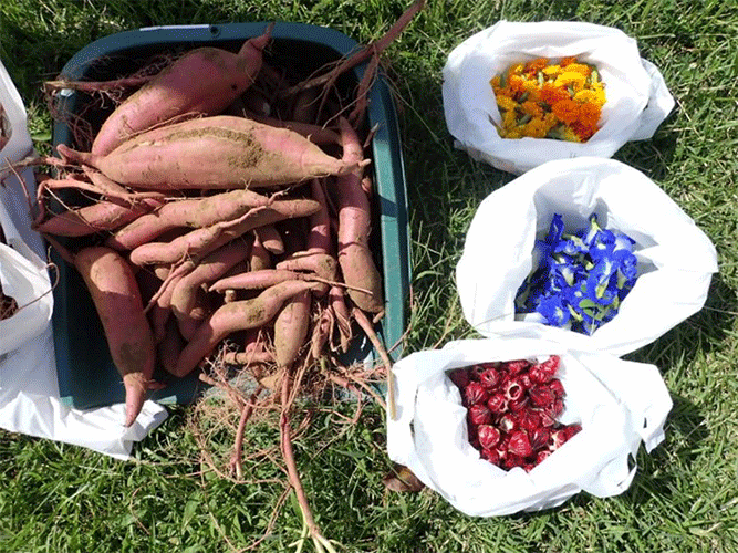 10月の学園祭にむけてさつまいもとハーブの収穫を行いました!