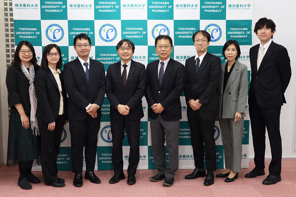 会談では、学生交流や共同研究の推進など、幅広い分野における連携に向けて活発な議論が交わされました。また、一行は薬物治療学研究室、天然有機化学研究室、食化学研究室、模擬薬局、モバイルファーマシーを見学し、研究内容や教育内容について意見交換を行いました。今回の来訪を通じて、両校の交流は一層深まり、今後の発展的な協力関係の構築が期待されます。