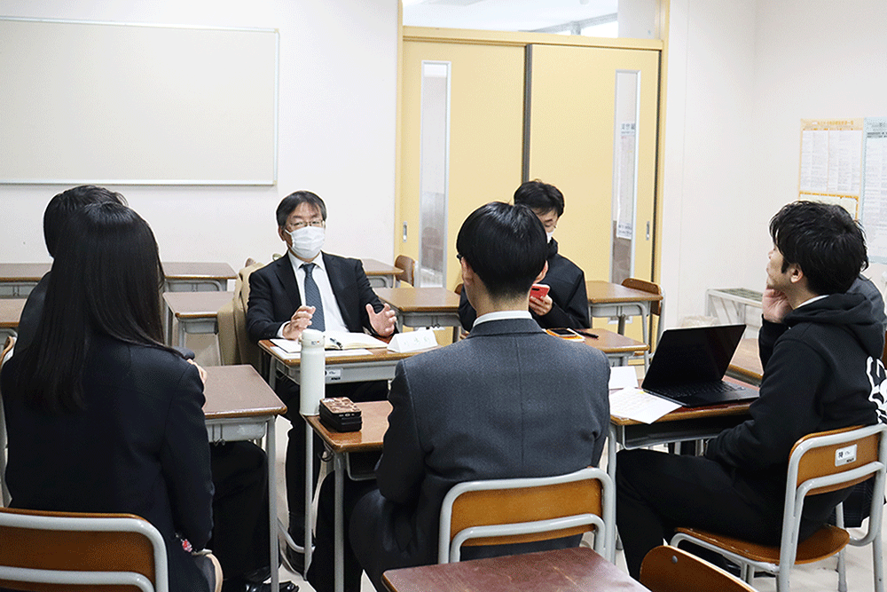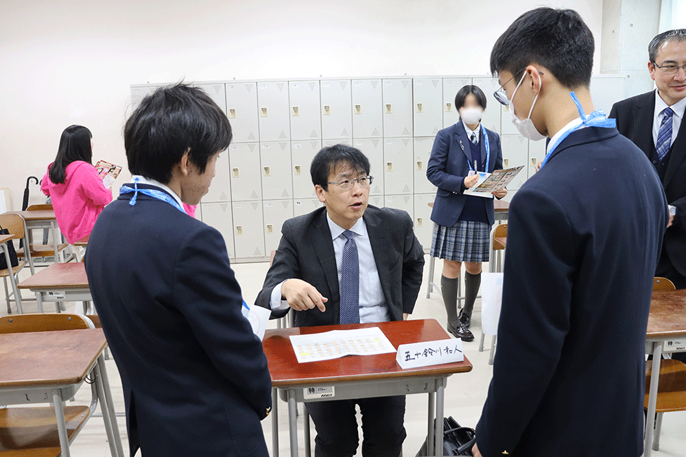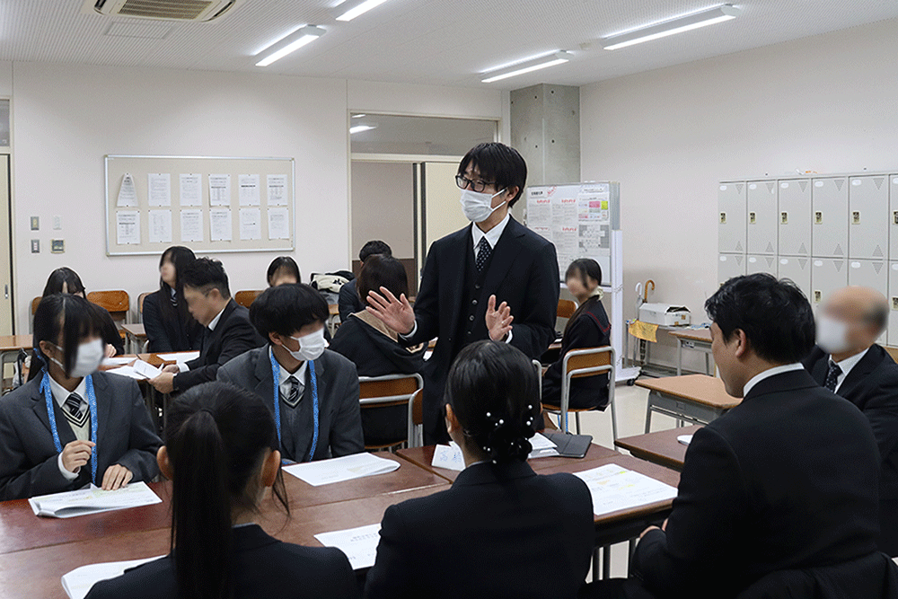 本学の教員も生徒の探究活動の成果発表を聞き、意見交換や助言を行いました。