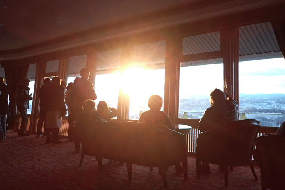図書館棟21階の展望ラウンジでは、午前6時49分に眩い日の出を迎え、館内は大きな歓声と感動に包まれました。当選された皆様は、美しい朝焼けを背景に記念撮影を楽しまれるなど、令和8年の輝かしい門出を思い思いに過ごされました。