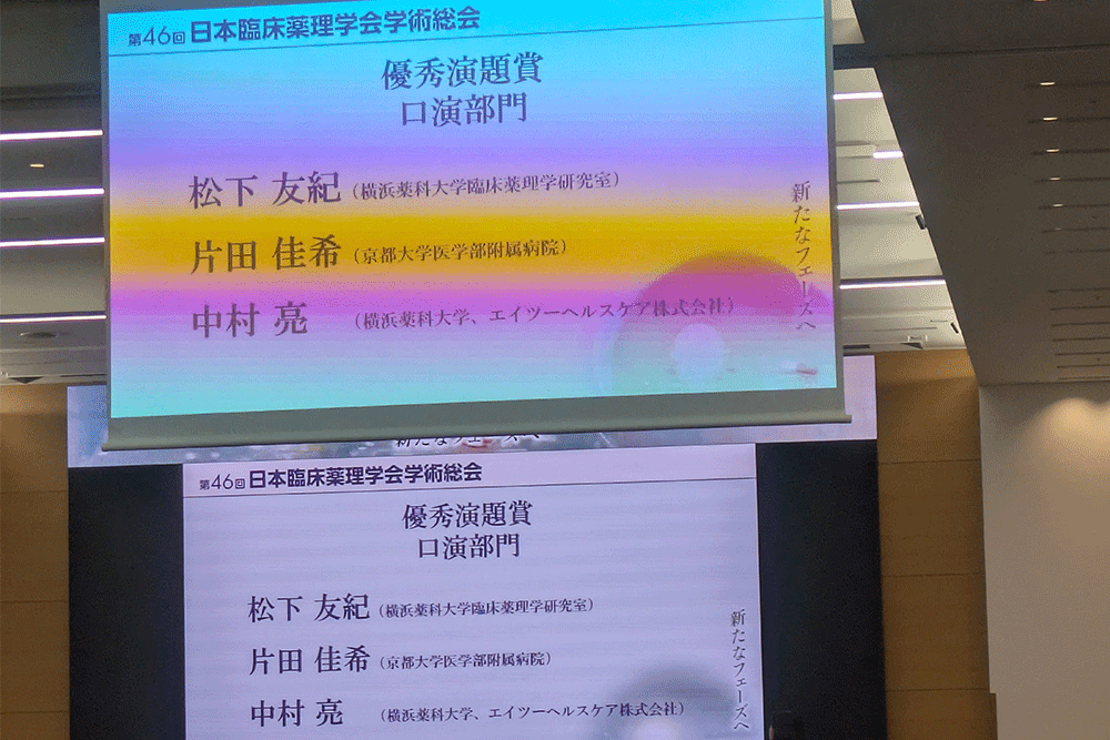第46回日本臨床薬理学会学術総会で「優秀演題賞」(口演部門)を受賞しました
