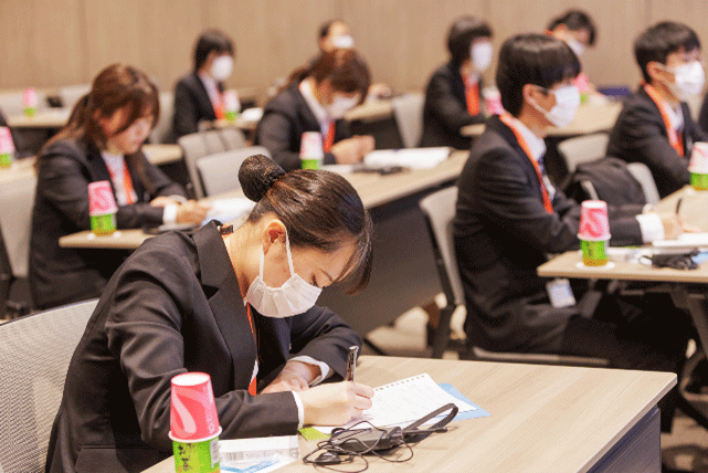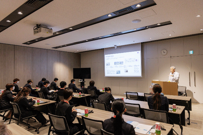 早期体験学習では、はじめに会社概要および研究所概要をご説明いただき、その後、実際に研究所内の様々な施設を見学させていただきました。
