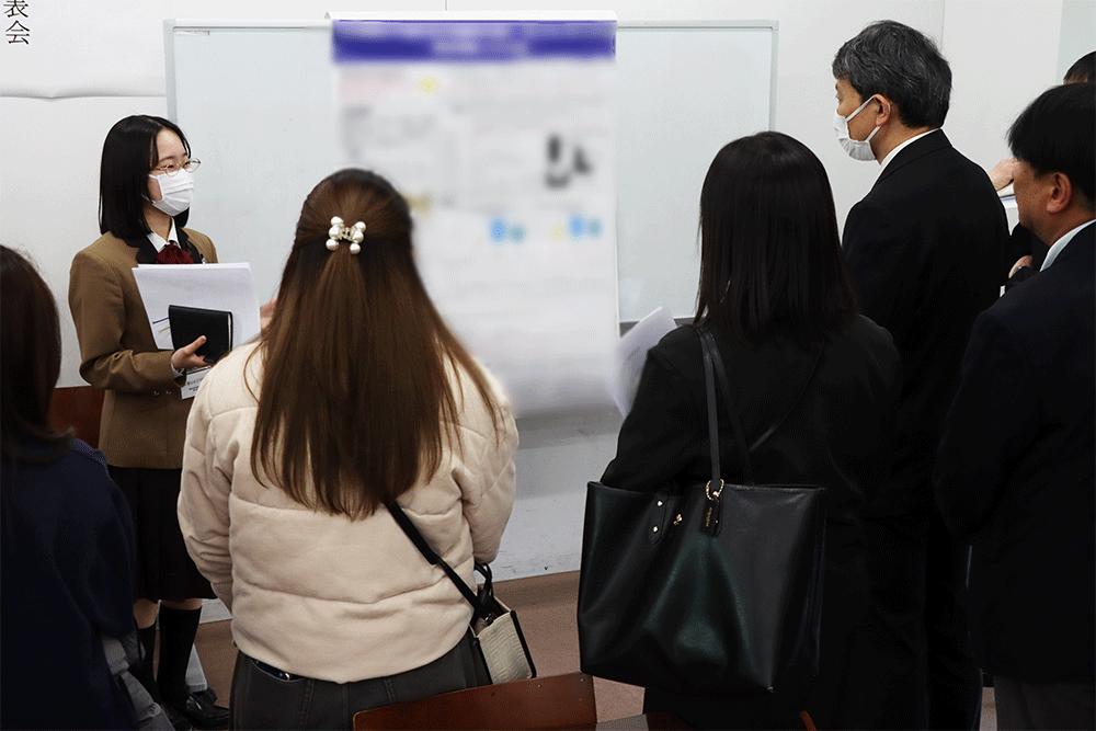 ご参加いただいた不二聖心女子学院高等学校の生徒さんには薬科学科生のポスター発表をご覧いただくとともに、日頃の研究成果を発表していただきました。