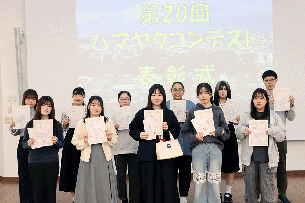令和8年2月28日(土)に、Leo Esaki 記念ホールにおいて、第20回ハマヤクコンテストの表彰式を行い、入賞者には本学後援会と紀伊國屋書店から賞状と副賞が贈られました。