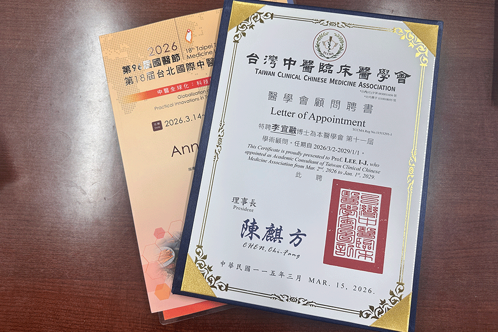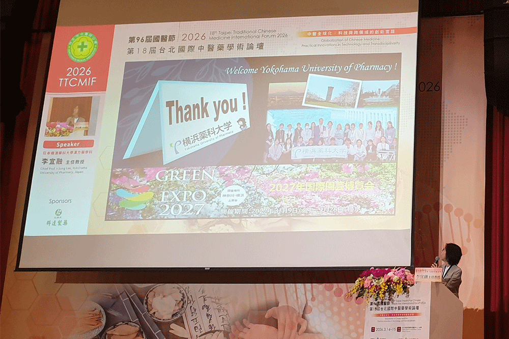 薬用資源学研究室の李宜融(り・いゆう)教授は、3月14日から15日に台湾で開催された「2026台北国際中医薬学術学会(18th Taipei Traditional Chinese Medicine International Forum)」において、「日本漢方~伝統と革新が織りなす未来(Japanese Kampo Medicine: A Future Interwoven with Tradition and Innovation)」と題した招待講演を行いました。また同学会では、李教授の指導のもと本年度博士号を取得した相澤玲子氏が、「日本漢方歯科治療の臨床症例系列報告」と題して講演を行い、会場の関心を集めました。