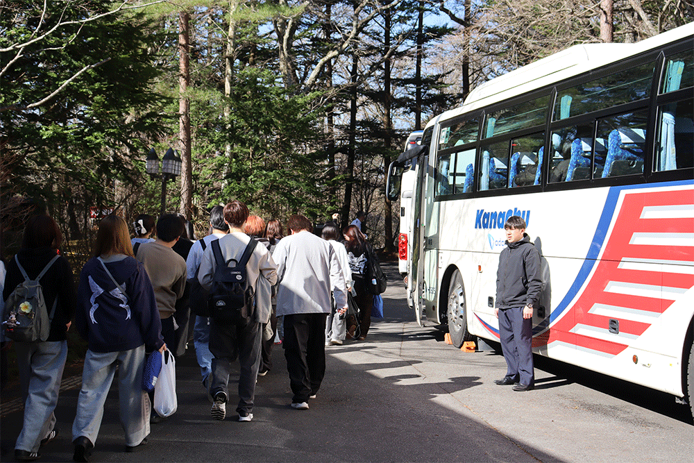 令和8年4月9日(木)に第1クールの新入生が大学を出発し、4月19日(日)最終クールとなる第5クールが大学に到着しました。これをもってかるいざわグリーンヴィラにおける11日間のフレッシュマンセミナーは、無事全行程を終了しました。