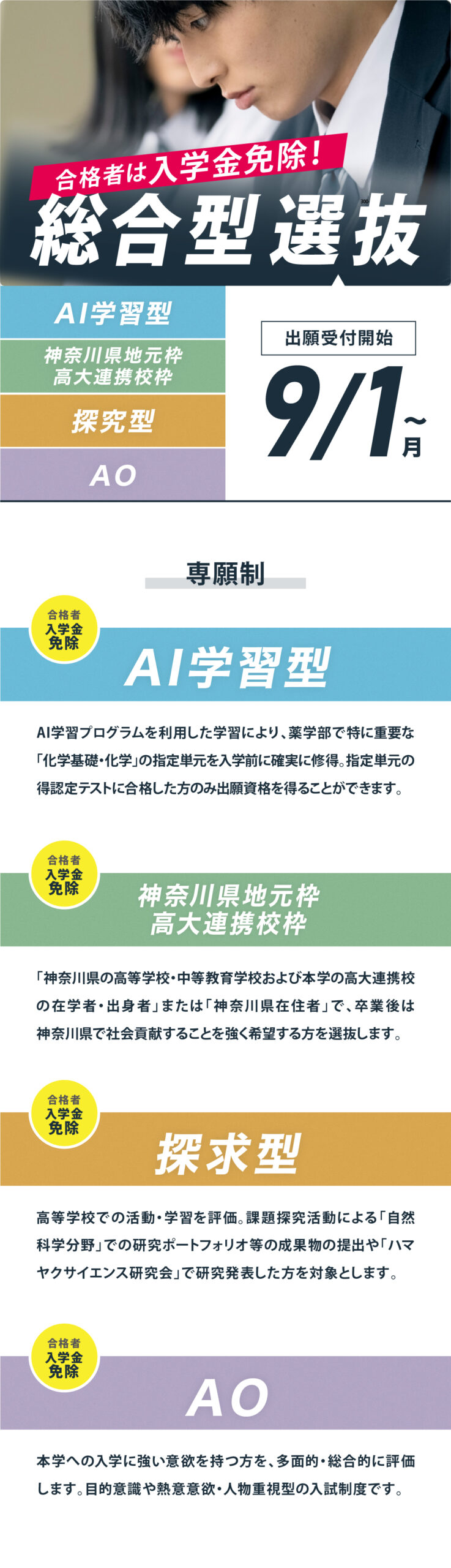 総合型選抜 出願受付は10/10まで 2025.09.1 新着情報 出願書類(PDF) 自己紹介書 自己アピール文 志望理由書(神奈川地元枠・高大連携校枠) 志望理由書(探究型) ポートフォリオ 経歴書 出願はコチラ(9/1~)